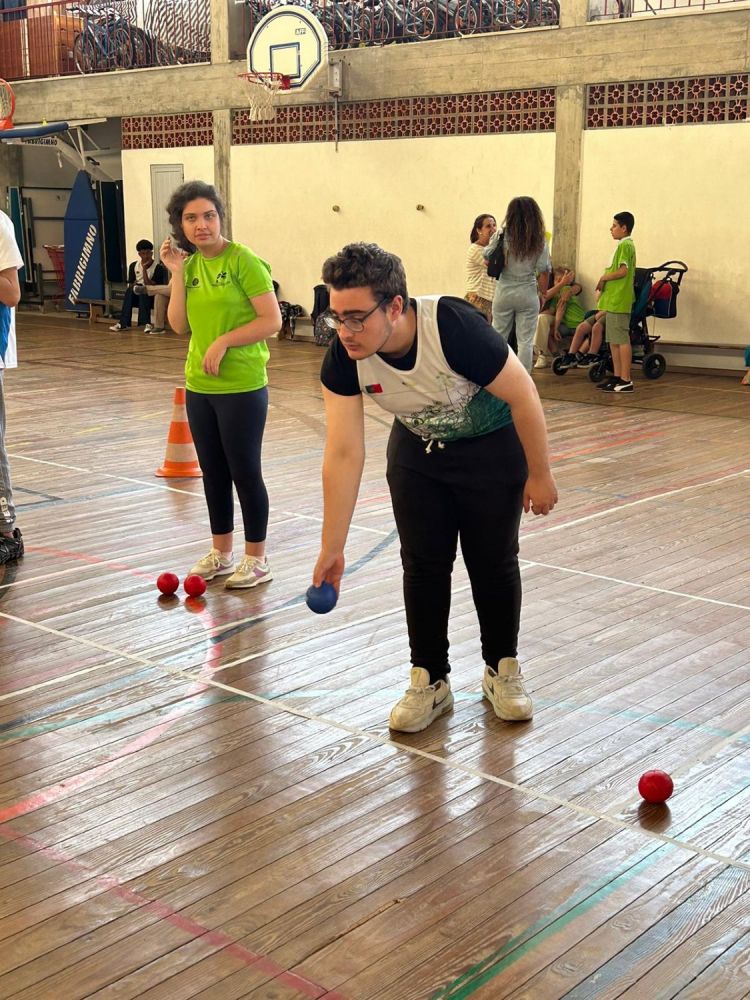 Na quinta-feira, dia 6 de junho, da parte da manhã, decorreu em Palmela, na Escola Básica Hermenegildo Capelo, o Encontro de Boccia. Não tendo tido um caráter competitivo, os alunos da nossa escola participaram de forma muito interessada e alegre, evidenciando valores inerentes à inclusão, como a fraternidade, a igualdade de direitos e o respeito pela dignidade.