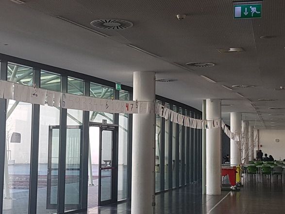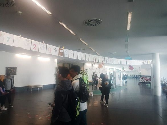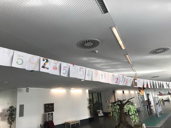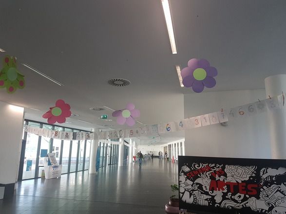Celebrou-se no dia 14 de Março de 2019 o dia do Pi na nossa escola. Para marcar este dia os alunos do 8º ano decoraram algarismos que compõem as casas decimais do número. Estes permitiram embelezar o espaço, da nossa escola, desde a entrada até ao bar. Os alunos estão de Parabéns!
