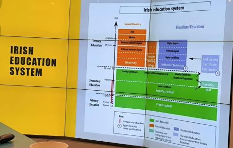 No âmbito do Projeto Erasmus+, as professoras da Escola Secundária de Pinhal Novo, Ana Leite, Carla Brinca, Elsa Andrade, Florbela Simões, Isabel Catarino, Sara Alves, Sónia Pinto e Sónia Saragoça, realizaram uma mobilidade de Jobshadowing à Irlanda / Dublin, entre os dias 12 e 18 de janeiro de 2025. Foram dias de partilha e de conhecimento do sistema de ensino irlandês, com maior foco na observação do modelo do ensino profissional. A experiência decorreu com visitas a três escolas diferentes, que se encontram articuladas em sistema de agrupamento, sendo cada uma delas especializada numa área educativa e profissional. Tivemos oportunidade de conhecer os membros das direções de cada escola, a equipa docente e não docente, assim como os diversos espaços escolares: salas de aula, salas específicas das áreas práticas (artes, informática, comunicação social, cinema), refeitórios, áreas administrativas e recintos exteriores. O referido grupo de professoras vem, por este meio, dar a conhecer à comunidade educativa o Padlet concebido para apresentar a mobilidade desenvolvida e no qual se disponibiliza um espaço onde possam colocar questões ou dúvidas. Em breve, será apresentada a atividade presencial de disseminação que está a ser desenvolvida para partilhar a experiência e responder a questões ou esclarecer dúvidas que venham a ser colocadas. A coordenação Erasmus+ |